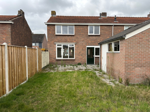 Gerenoveerde halfvrijstaande woning met voor- en achtertuin en stenen berging. Rondom houten kozijnen met dubbel glas. Boven zijn 3 slaapkamers en de badkamer met douche en wastafel. Keuken is nog te plaatsen.