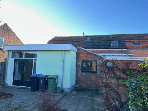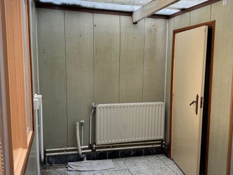 Vanuit de bijkeuken is er een deur naar de tuin. Aan de achterzijde is een berging aangebouwd met de CV ketel (Nefit Smartline HR 2005).