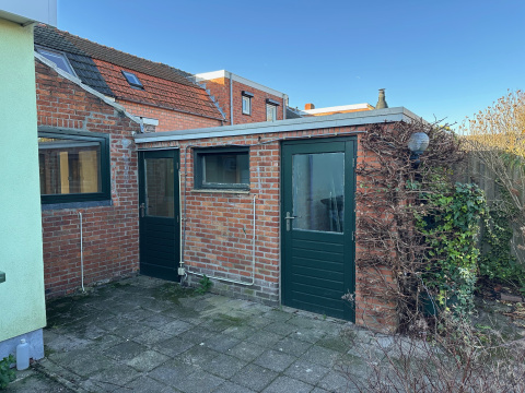 Er is een achterom via de tuinpoort aan de zijkant van de woning.