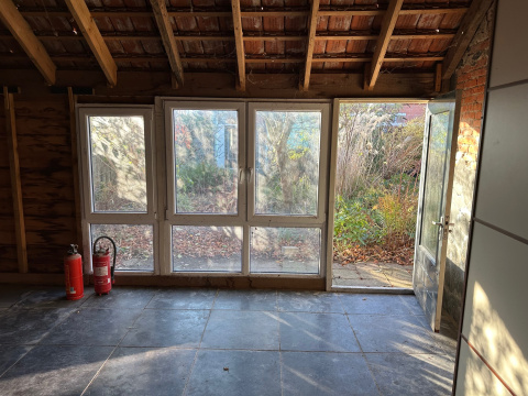 Aan de achterzijde is een dubbele tuindeur.