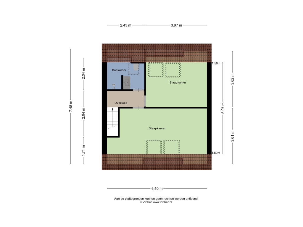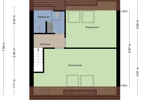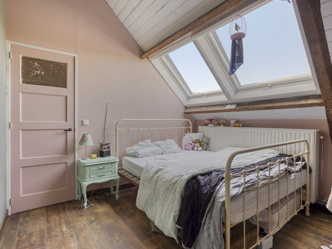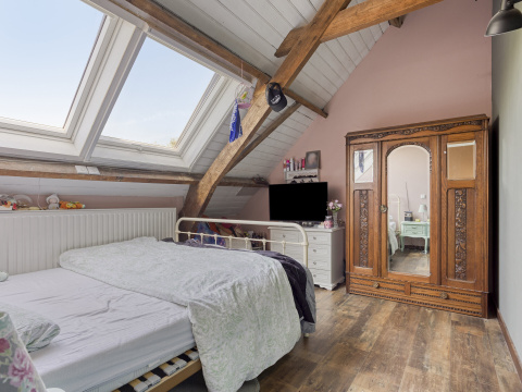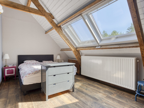 Op de verdieping is de overloop en er zijn hier 2 slaapkamers (23.4 en 38m2), beiden met 2 dakramen. Deze zijn voorzien van elektrisch bedienbare screens en horren.