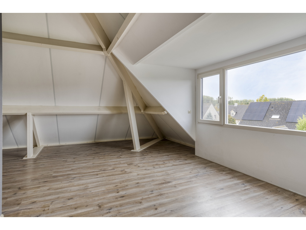 Op zolder is een overloop met tweede badkamer met toilet, douche en wastafel en een ruime, L-vormige slaap-/ hobbykamer met nieuwe dakkapel en veel bergruimte.