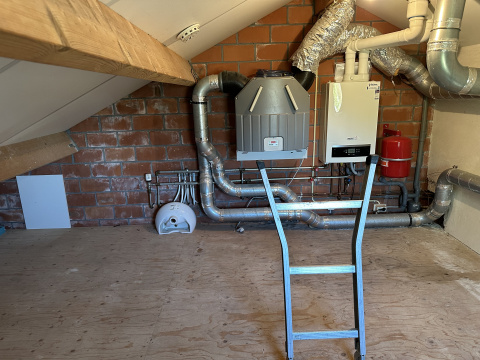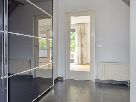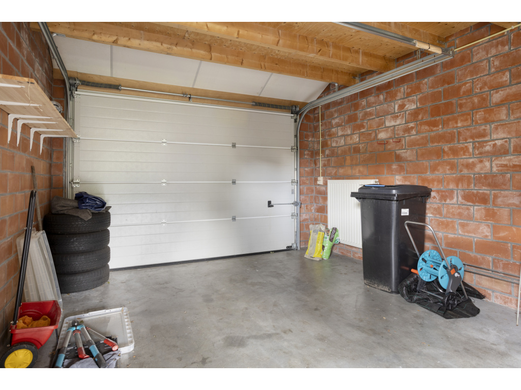 Vanuit de bijkeuken komt u in de garage met ruime zolder (zadeldak) waar de Nefit HR combiketel uit 2017 en de mechanische ventilatie te vinden zijn. Deze zolder biedt veel extra bergruimte. De garagedeur is een geïsoleerde sectionaaldeur.