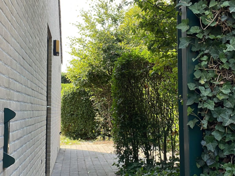 De gehele tuin is omheind en ligt op het Westen. Achter het huis vindt u een groot terras. U hebt veel privacy en de straat is rustig. Er is een achterom met afsluitbare poort.