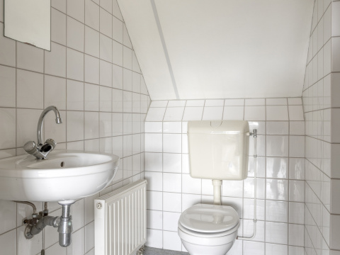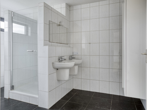 Er is een badkamer op de verdieping en op zolder. Op elke woonlaag is dus een toilet aanwezig.