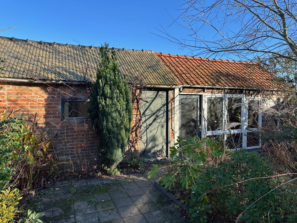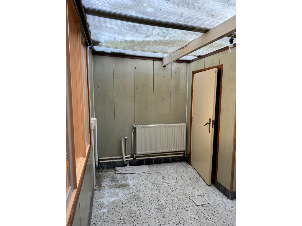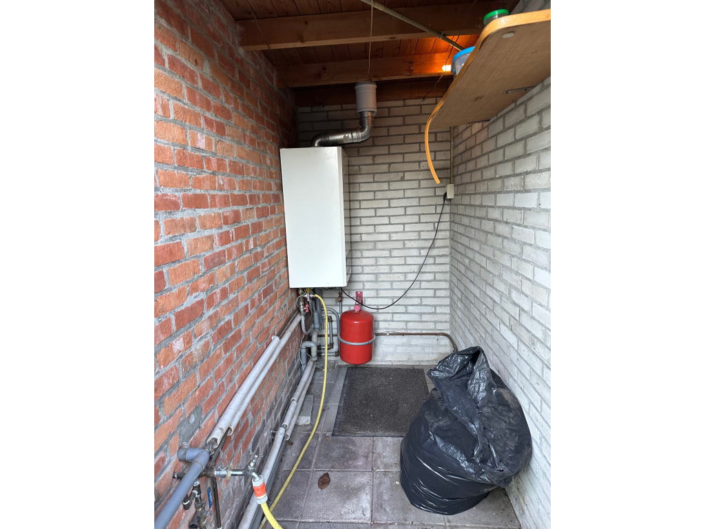 Vanuit de bijkeuken is er een deur naar de tuin. Aan de achterzijde is een berging aangebouwd met de CV ketel (Nefit Smartline HR 2005).