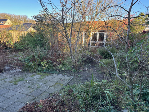 Er is een achterom via de tuinpoort aan de zijkant van de woning.