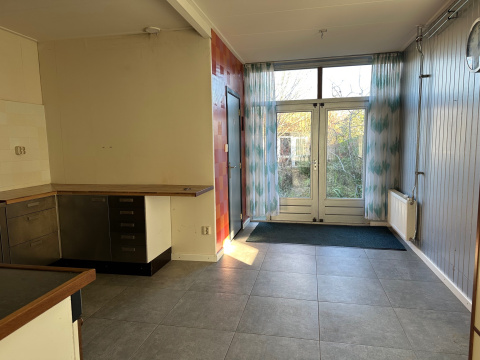 Dubbele, te renoveren woning met aanbouw aan de achterzijde en 2 bergingen. Met 2 woonkamers, 2 keukens, 2 badkamers en 3 slaapkamers.