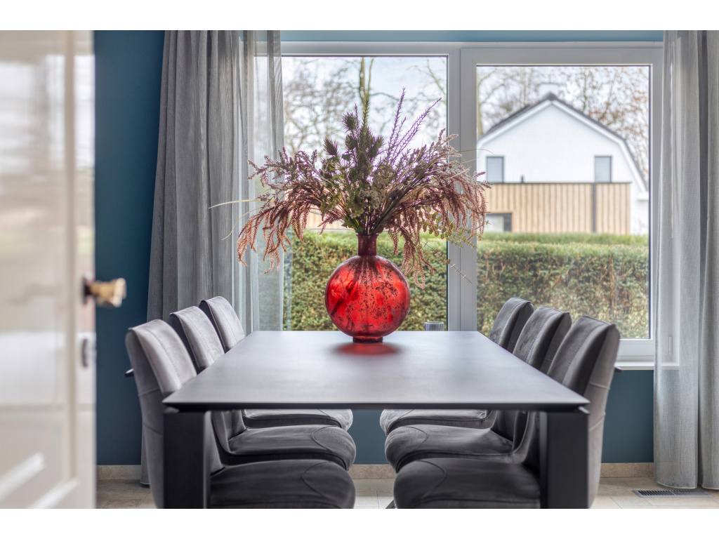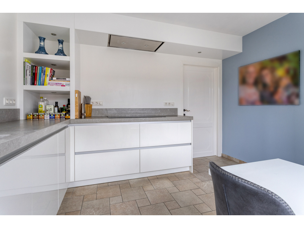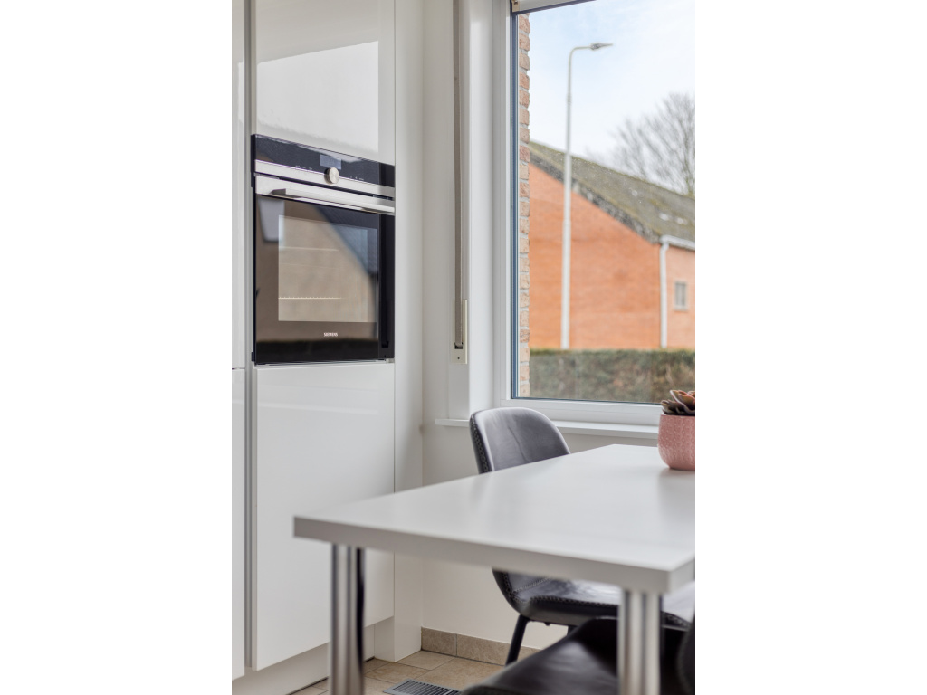 De keuken is vernieuwd in 2018 en voorzien van Siemens inbouwapparatuur, zoals een Quooker, inductiekookplaat, wasemkap, oven, koelkast en vaatwasser.