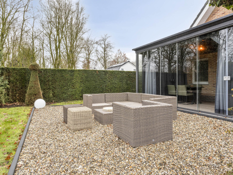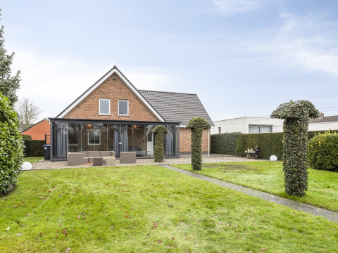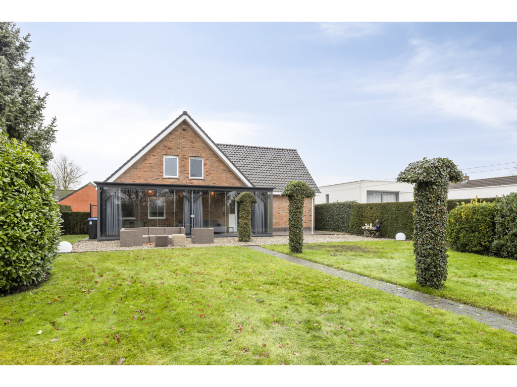 Onder architectuur gebouwde, goed onderhouden en geïsoleerde woning met aangebouwde tuinkamer en aanpandige garage met zolder. Ruime woonkeuken, slaapkamer en badkamer op de begane grond en 3 slaapkamers op de verdieping. Ruime tuin met veel privacy.