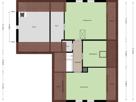 Vanuit de achterste slaapkamer is er een vlizotrap naar de bergzolder (Nokhoogte 1,5m)
