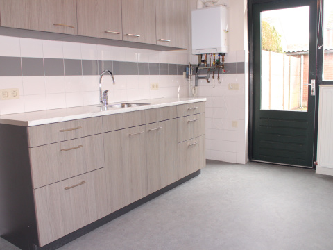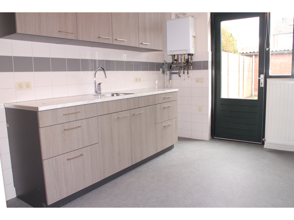 In de keuken is ook de CV-ketel geplaatst (Intergas HR 2022) en hier is de buitendeur naar de tuin.